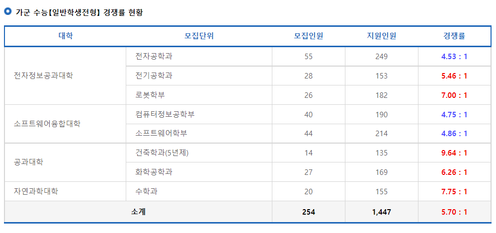 1. 2023학년도 광운대학교 정시 전체 경쟁률 현황