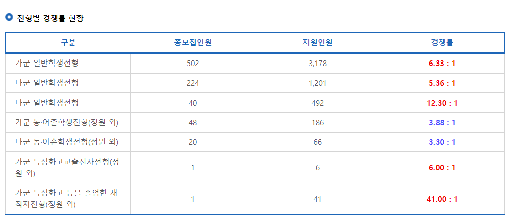 2. 2023학년도 성신여자대학교 정시 전형별 경쟁률 현황