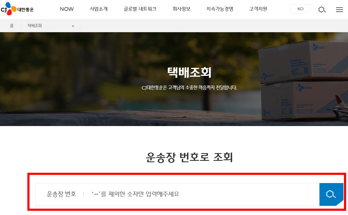 CJ 대한통운 택배조회 바로가기