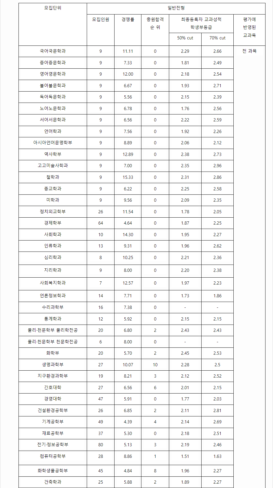 2023학년도 서강대학교 수시, 정시 등급 결과 및 2024학년도 전형평가 기준 (0) | 2023.06.29 |
