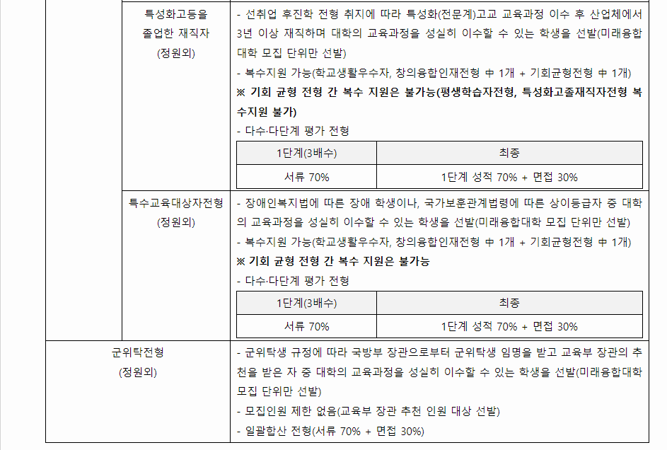 2024학년도 서울과학기술대학교 학생부종합전형 전형별 주요사항