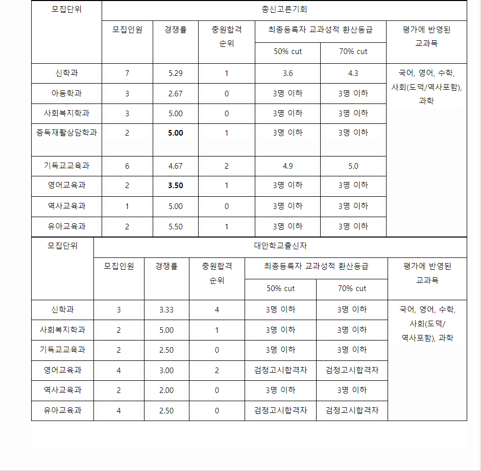 2023학년도 총신대학교 학생부교과전형 전형 결과