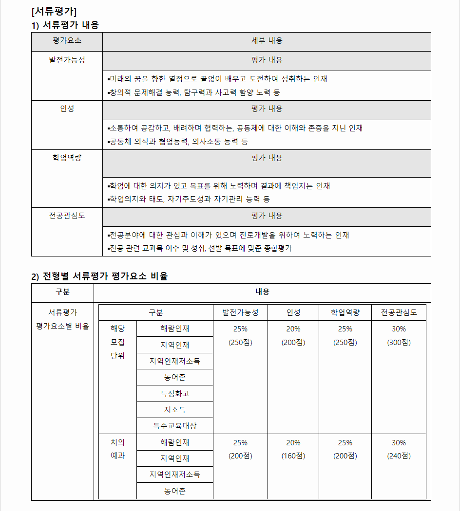 2024학년도 강릉원주대학교 학생부종합전형 서류평가