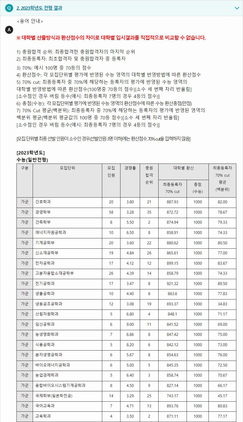 2023학년도 전남대학교 학생부교과전형 농어촌학생전형 결과