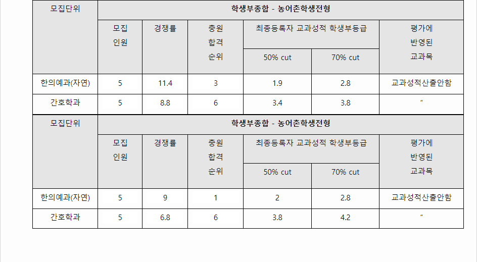 2023학년도 대구한의대학교 학생부종합전형 농어촌학생전형 결과