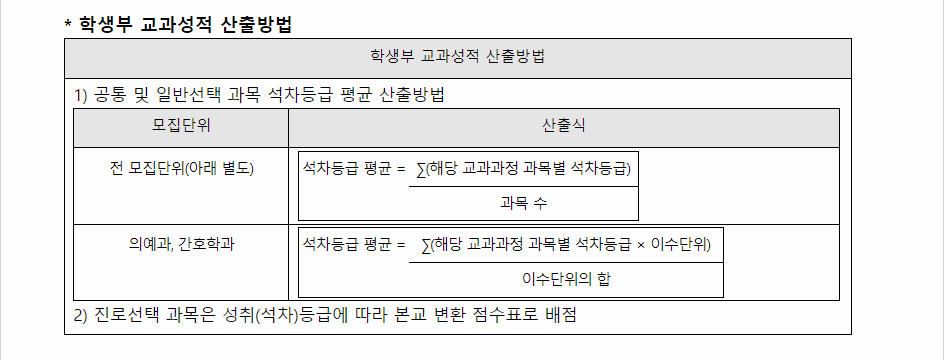 2024학년도 울산대학교 학생부교과전형 학생부 교과성적 산출방법