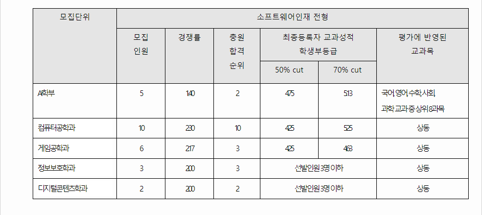 2023학년도 동명대학교 학생부종합전형 소프트웨어인재전형 결과