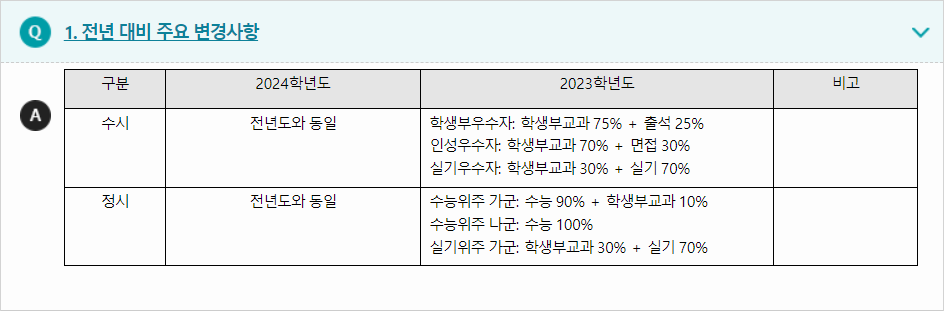 2023년 수시, 정시 관련 등급 내용과 2024학년도 주요사항은