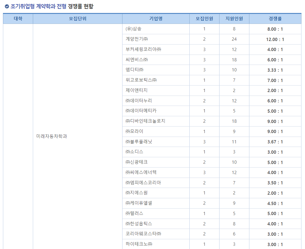 2024학년도 가천대학교 수시 전형 조기취업형 계약학과 전형 경쟁률 현황