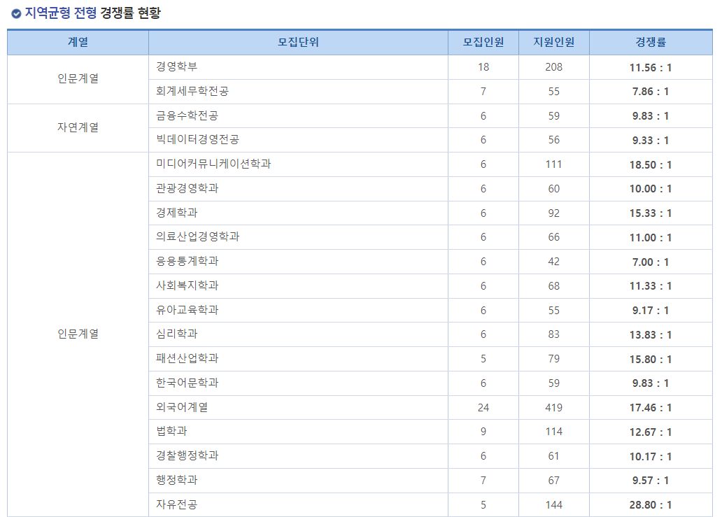 2024학년도 가천대학교 수시 전형 지역균형 전형 경쟁률 현황