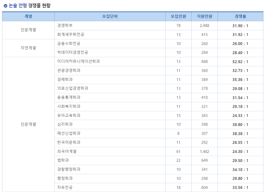 2024학년도 가천대학교 수시 전형 논술 전형 경쟁률 현황