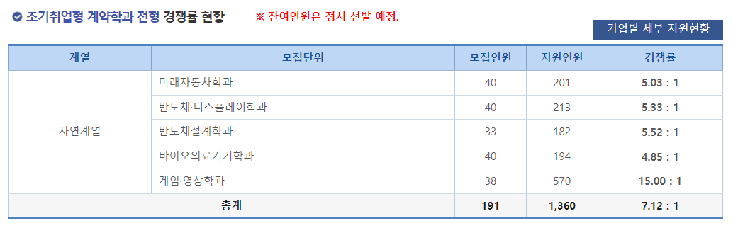 2024학년도 가천대학교 수시 전형 조기취업형 계약학과 전형 경쟁률 현황