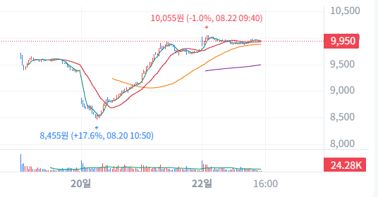 현재 기준 시가총액은 검색 결과에 따라 변동성이 있습니다. 2025년 8월 20일 기준 거래대금은 약 1,008억원으로, 상장 초기임에도 높은 거래량을 보였습니다.